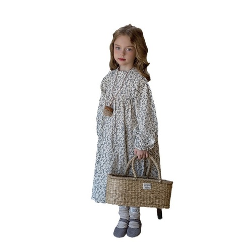 Vestido de princesa de manga larga versión coreana para niñas 2025, cuello redondo, encaje Floral francés de algodón cepillado informal para niños de primavera