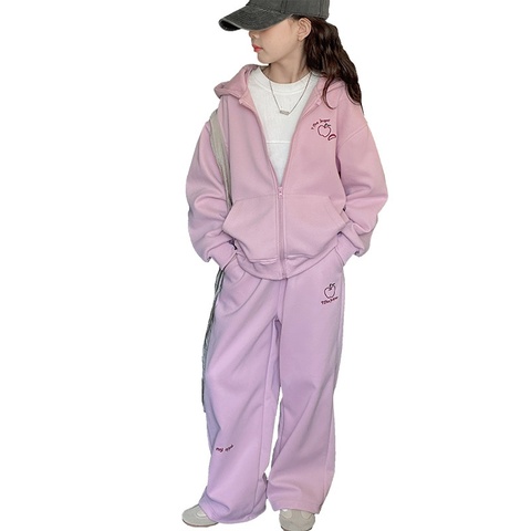 2025 nuevo conjunto deportivo informal de moda para niñas, sudadera con capucha de Color sólido, traje para primavera otoño para salidas de verano