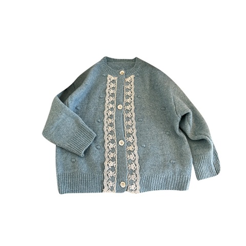 2025 Nieuwe Koreaanse Kanten Top Meisjes Casual Cardigan Sweater Met Ronde Hals Gebreid Babyjack Voor Lente En Herfst